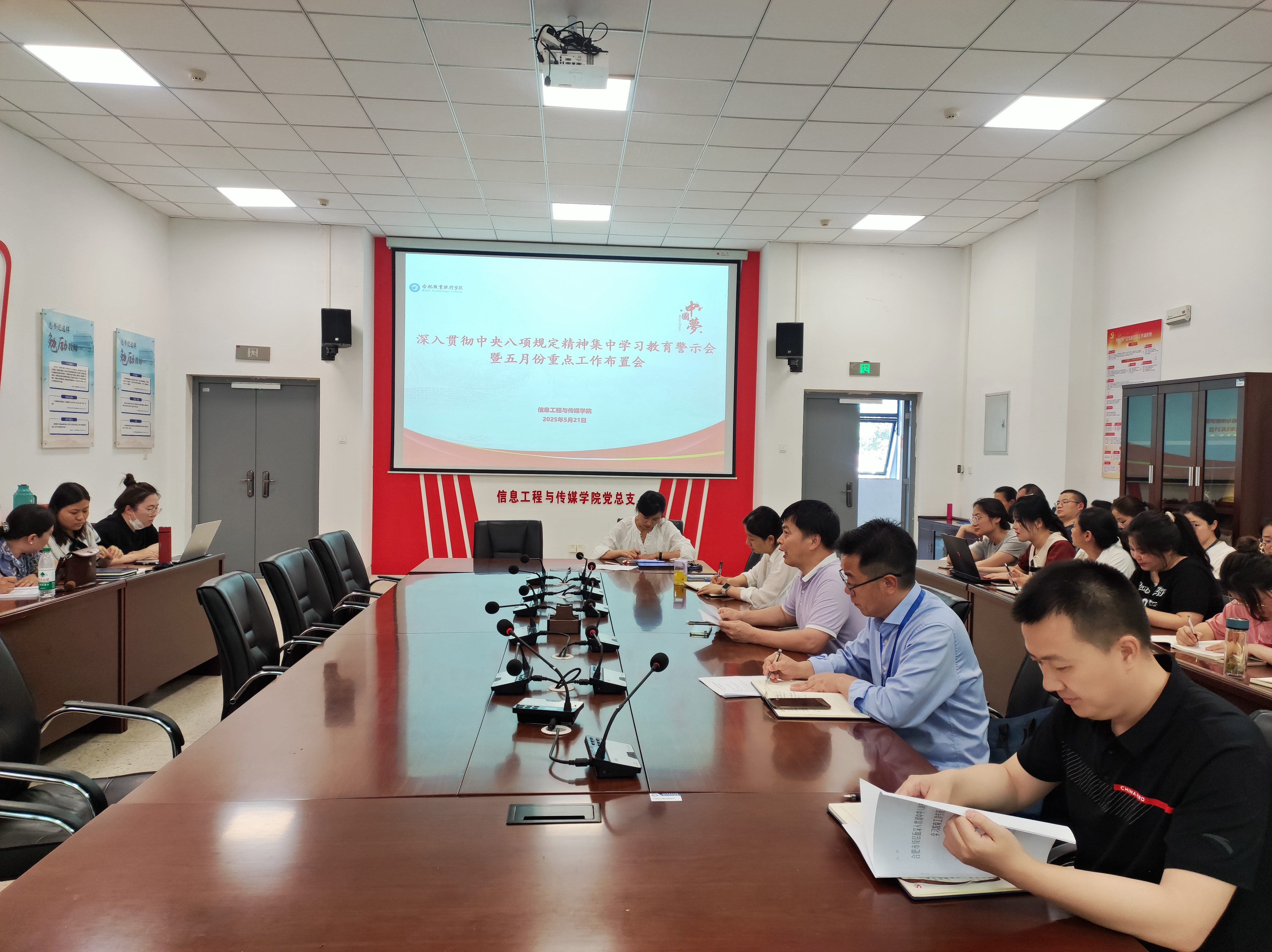 为进一步推进深入贯彻中央八项规定精神学习教育,加强作风建设,夯实责任担当,5月22日,UG环球360官方网站在信息楼会议室召开深入贯彻中央八项规定精神学习教育警示教育会暨5月份重点工作布置会议,会议由学院党总支副书记(主持工作)尹仕果主持,全体教职工参加会议。