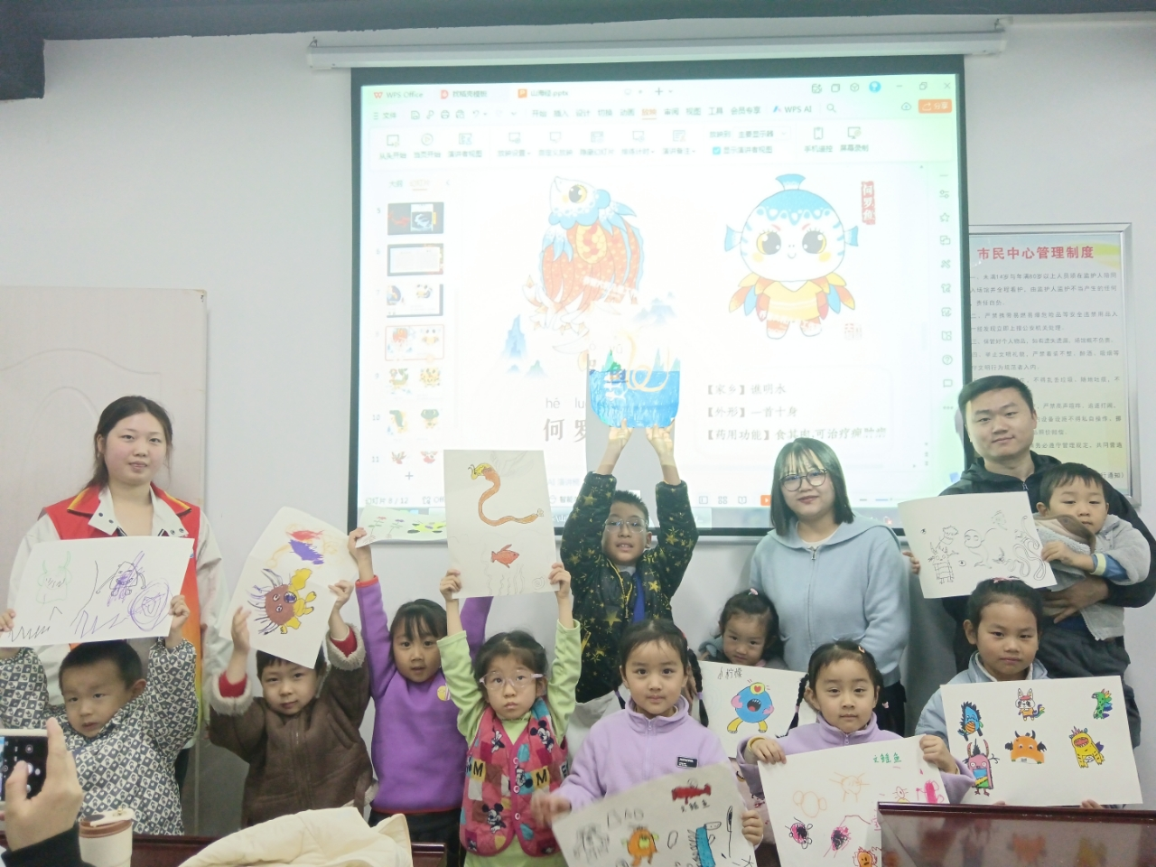 活动最后,孩子们的作品被一一展示、点评,每一幅作品都充满了童真和想象力。